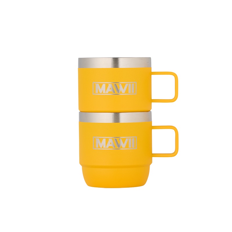 Edelstahl Espresso Tasse mit Henkel, doppelwandig isoliert, unzerbrechlich, stapelnbare, stilvolle Espressotasse für Outdoor-Events