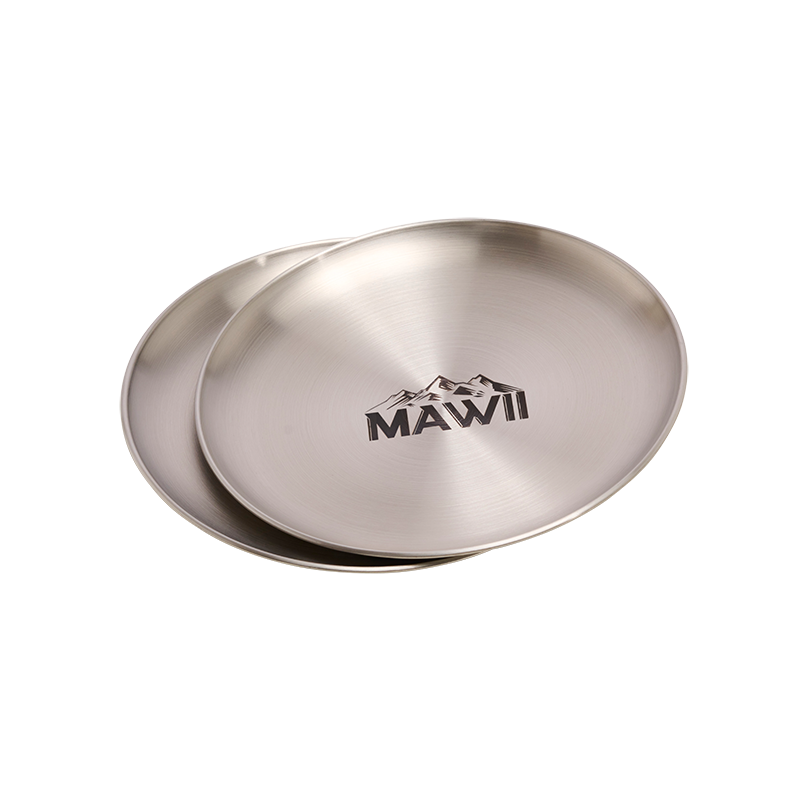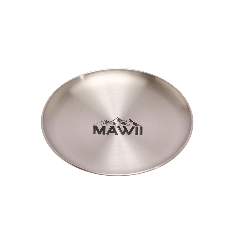 Edelstahl Teller aus 18/8 Edelstahl, mit eingelaserten Logo in schwarz, Tellergröße ca. 23 cm Durchmesser, sehr flach, gebürstetes rostfreies Edelstahl, Spülmaschinen geeignet, abriebfest und nahezu unverwüstlich. Die Oberfläche ist leicht zu reinigen. Aufgrund seiner Eigenschaften ist der Teller ideal für Camping,- Wander-oder Trekkingausflüge geeignet. Nachhaltige Alternative zum Plastikteller oder Melaniengeschirr. So lassen sich vielen Lieblingsgerichte beim Camping & Co. gut genießen.