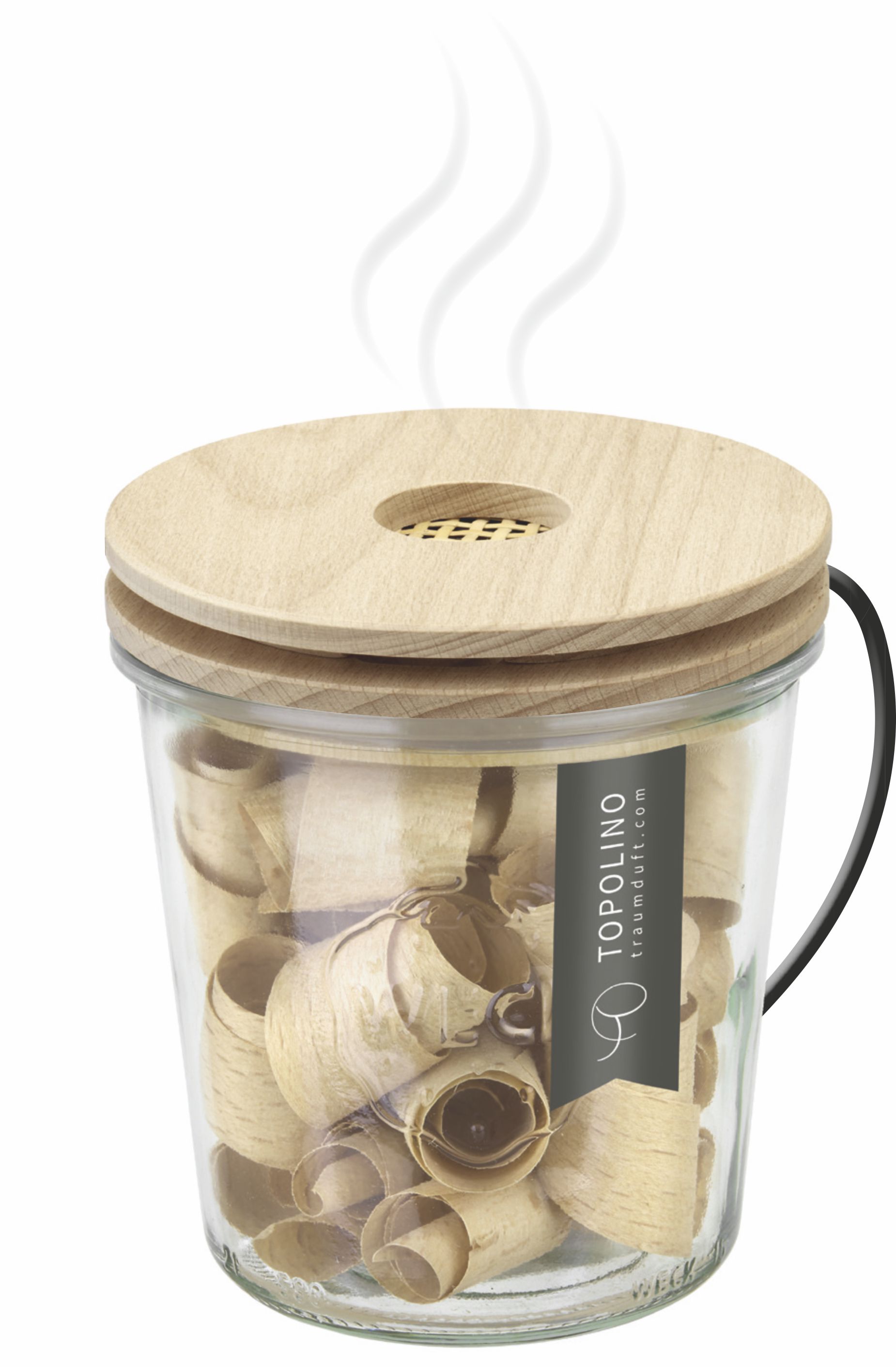 für die optimale Duftverteilung. Entscheiden Sie selbst, welchen Ihrer Lieblings-Traumdüfte Sie gern wie intensiv haben möchten. Weckglas gefüllt mit Trucciolo Buchenspan in Kombination mit dem sehr leisen Lüfter-Element schaffen ein wundervolles Dufterlebnis-das völlig wartungsfrei. Einfach auf das Weckglas das Lüftungselement drauf setzen und das Netzteil in die Steckdose stecken. Der Duft entfaltet sich anschließend sanft im Raum. Diese clevere Raumauflösung vereint viele Aspekte unserer Traumduft-Philosophie der Nachhaltigkeit.