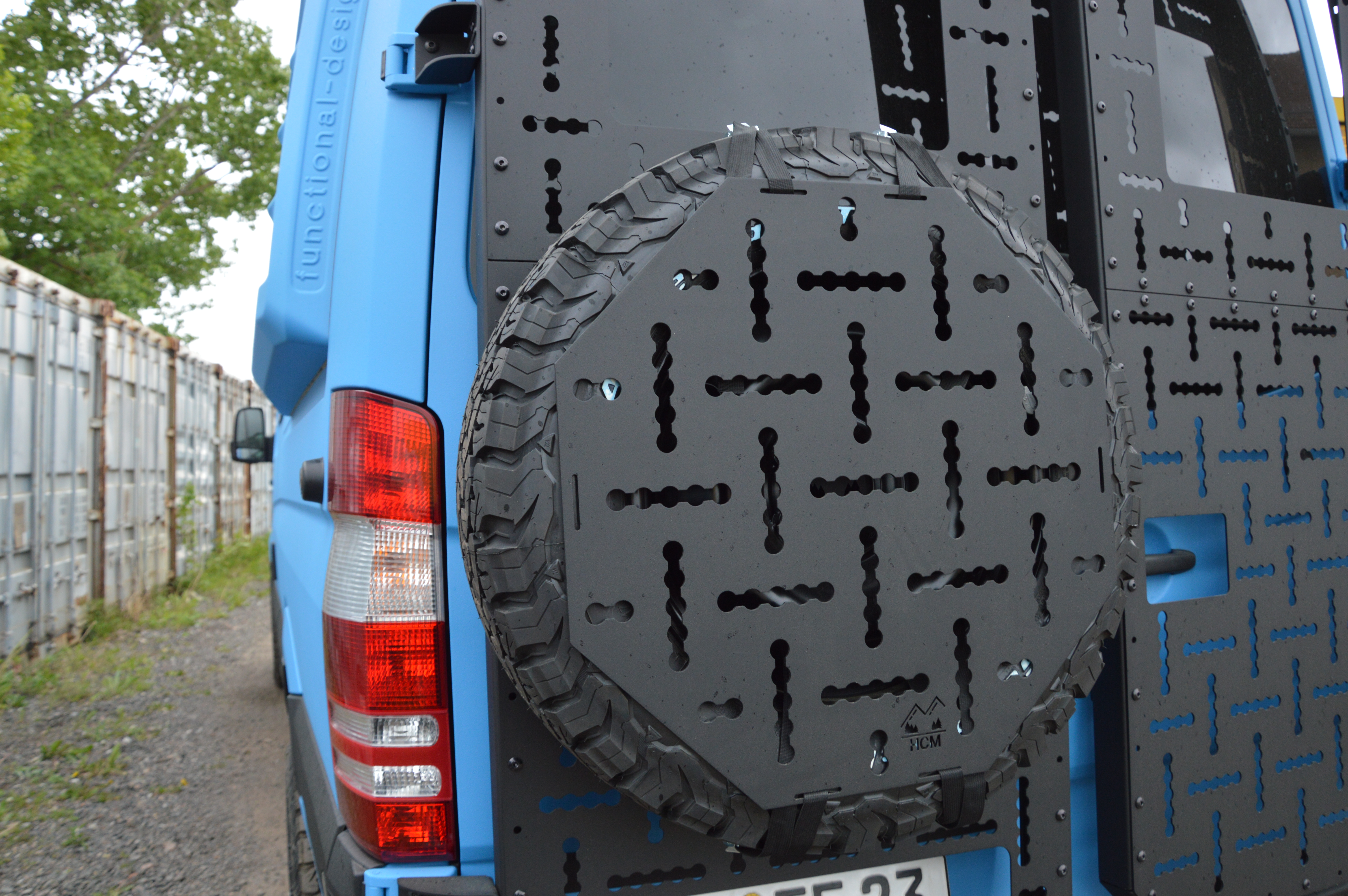 Die universelle Größe ermöglicht die Aufnahme von Felgen zwischen 16 und 18 Zoll. Dank der modularen Bauweise können neben dem Reserverad auch zusätzliche Komponenten wie Kanister, Werkzeug oder Bergeausrüstung sicher befestigt werden.