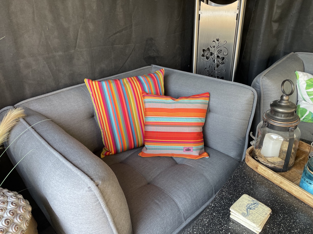 Premium-Kissenbezug aus 70% Dralon und 30% Polyethylen. Wunderschönes Erscheinungsbild durch eine hochwertige Verarbeitung, einen Premium-Stoff. Das Dekokissen ist ein garantiertes Highlight für dein Camping Stuhl und Liege, Deine Gartenmöbel, deine Lounge etc.