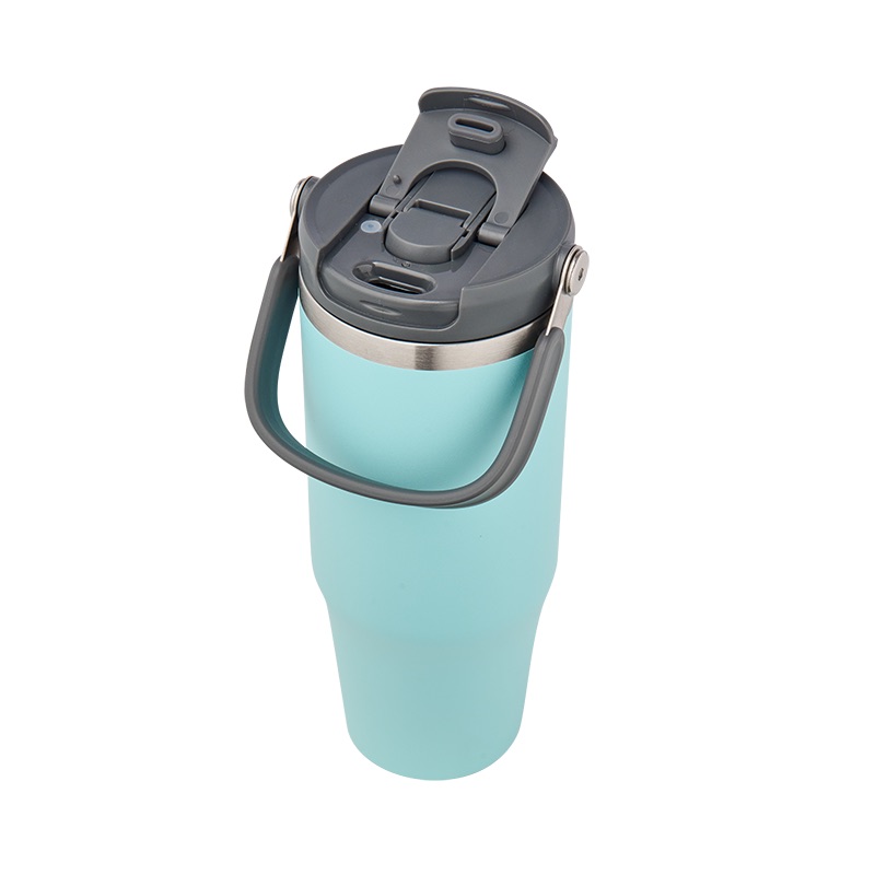 Sobald der Becher zugeklappt ist, ist er auslaufsicher und hält dank doppelwandiger Vakuumisolierung.