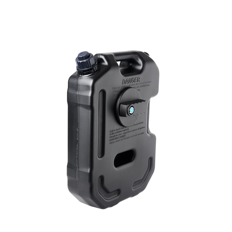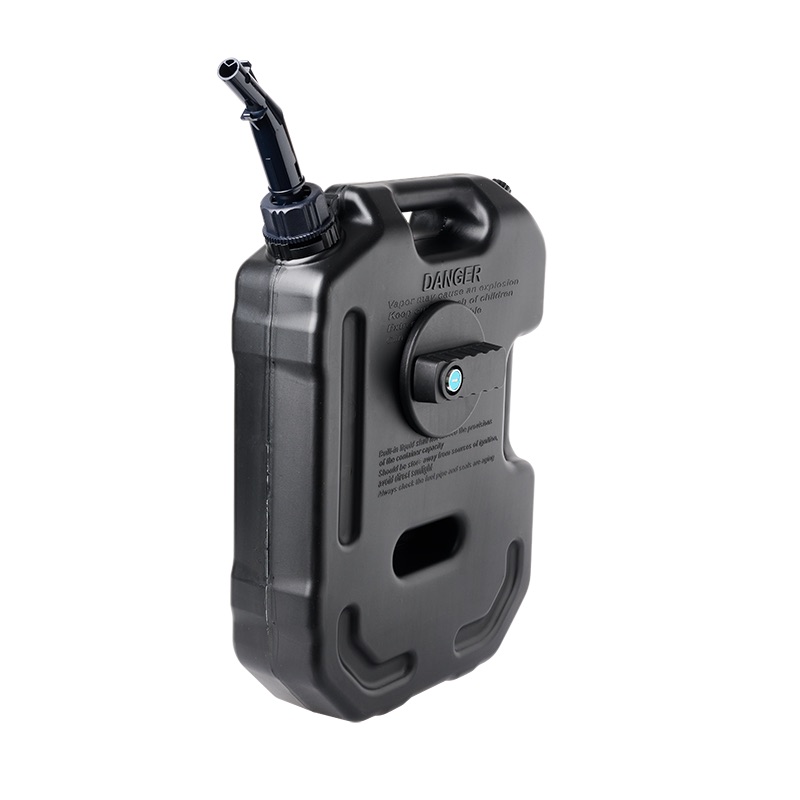 Platzsparender, robuster 10-Liter-Kanister mit praktischem Ausgießer und zusätzlicher Belüftung für schnelles und einfaches Auftanken beim Fahren im Gelände.